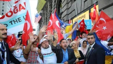 أبناء الجالية التركية يستقبلون أردوغان أمام مقر إقامته في نيويورك
